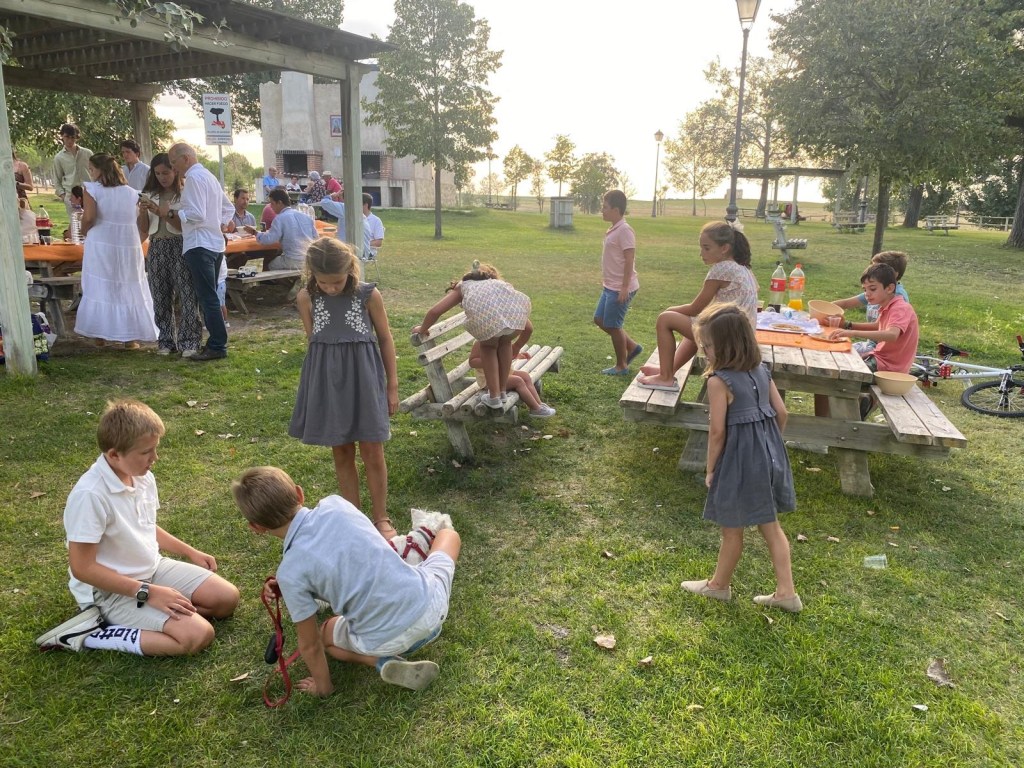De vuelta a casa: baños, duchas, pijamas y los más pequeños a dormir. Los que ya no son tan pequeños suelen quedar con otros chicos del pueblo hasta las 12 más o menos.