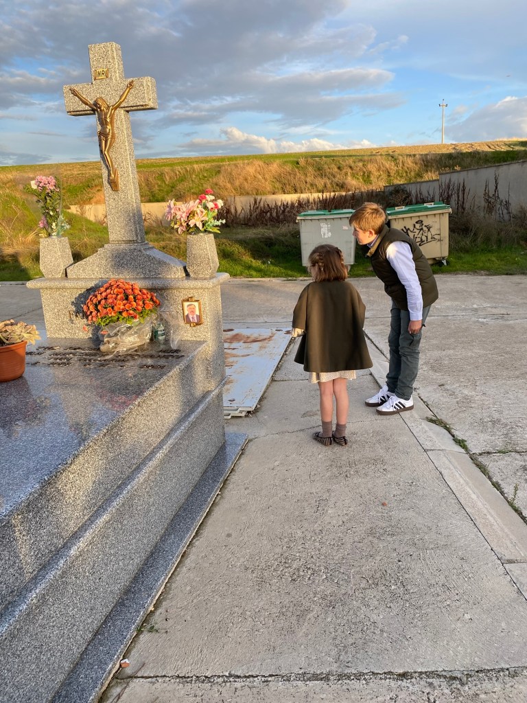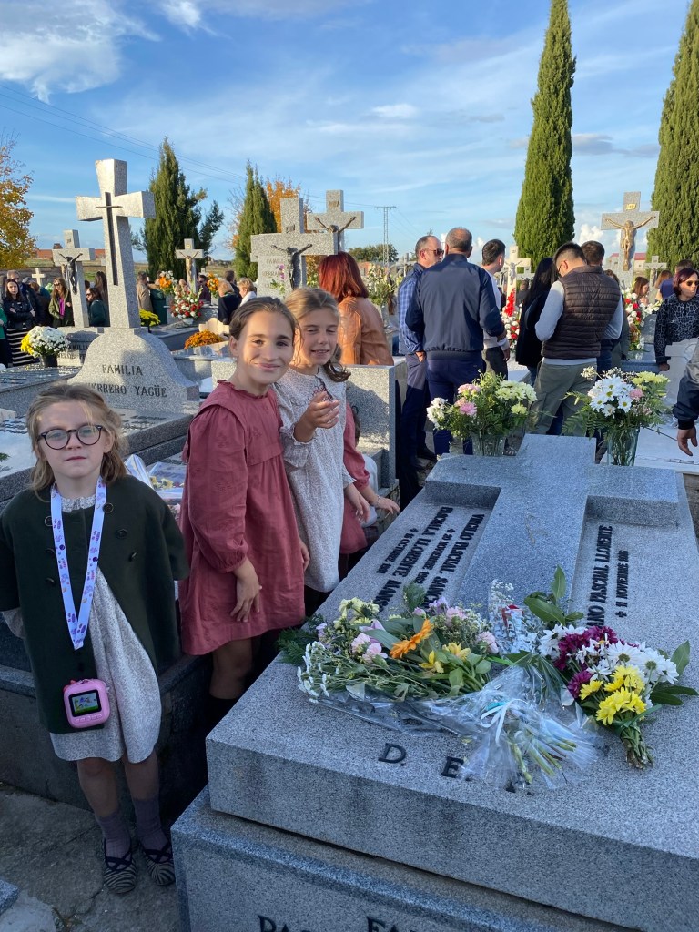 Qué bonito es cuando todas las tardes de verano, de camino a la ermita para que los niños jueguen, pasáis todos en coche por delante del cementerio del pueblo. Los niños se asoman por las ventanillas chillando: “¡Adiós abuelo Mariano, adiós!”, y le tiran algún beso, a la vez que los padres tocáis el claxon. Y en fechas señaladas rezamos al pasar por ahí un Avemaría por abuelo.